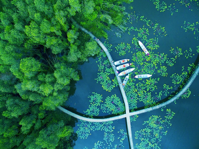 Làng nổi Tân Lập thuộc tỉnh Long An là địa điểm du lịch gần Sài Gòn dịp tết lý tưởng để bạn đưa cả gia đình tới đây nghỉ ngơi và thư giãn trong kỳ nghỉ lễ dài. Ở đây các bạn có thể check in trên cầu gỗ, thưởng thức các món ăn đặc sản của miền Tây như lẩu mắm bông điên điển, bánh xèo miền Trung, kho quẹt… rất nhiều món ăn dân dã để bạn thưởng thức. Tới làng nổi Tân Lập Long An bạn cũng sẽ được chiêm ngưỡng cảnh sắc thiên nhiên miền quê sông nước đậm chất của người miền Trung tạo nên một kỳ nghỉ lễ trọn vẹn nhất.
