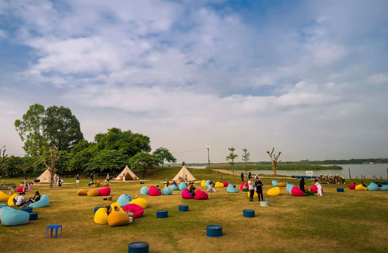 Bãi đá sông Hồng không chỉ được biết đến là địa điểm chụp hình đẹp với nhiều tiểu cảnh và các loài hoa được trồng rất nhiều mà nơi đây còn có một bãi cỏ rộng rãi tạo một khoảng không để các bạn có thể tổ chức team building theo ý muốn của mình.