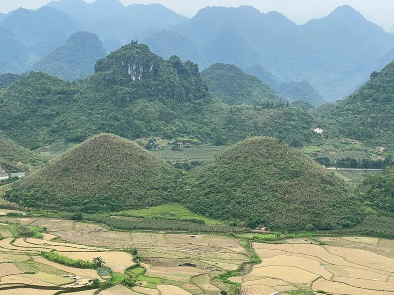 Ngoài truyền thuyết đầy ấn tượng về núi đôi thì vẻ đẹp tự nhiên ở nơi đây cũng khiến du khách mê mẩn và ghé tới núi đôi Quản Bạ. Đặt chân đến nơi đây, bạn sẽ được đắm chìm trong vẻ đẹp hùng vĩ mà mềm mại của những thửa ruộng bậc thang xanh mướt trải dài bất tận, uốn lượn giữa các triền núi trập trùng như những nét cọ tài hoa tô điểm cho bức tranh sơn thủy hữu tình. Mỗi thời khắc trong ngày, mỗi mùa trong năm, vùng đất này lại khoác lên mình một sắc diện riêng – khi thì rực rỡ, khi lại mơ màng – khiến bất cứ ai cũng phải dừng bước, lặng ngắm và say mê.